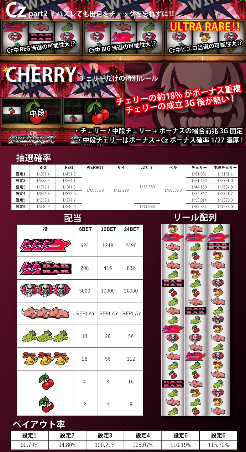5リールNEW TYPE「IT's PIERROT」はMAXベット専用機ですトレジャーエリアの場合は5枚/10枚/20枚の3種類の台からお選び頂けます)。