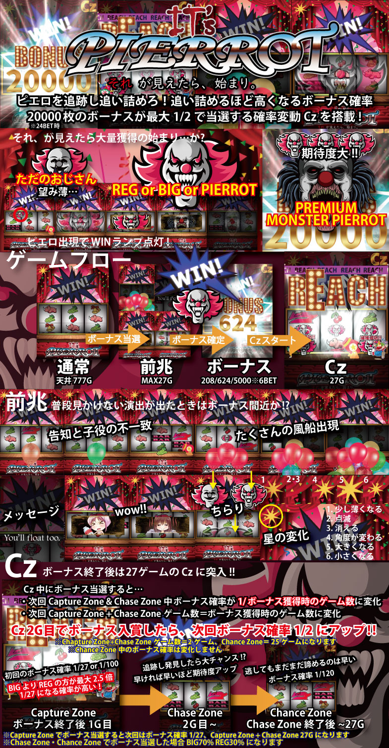 ・終了:5リールNEW TYPE「IT's PIERROT」を終了します。獲得した経験値はこのボタンを押したときに反映されます。