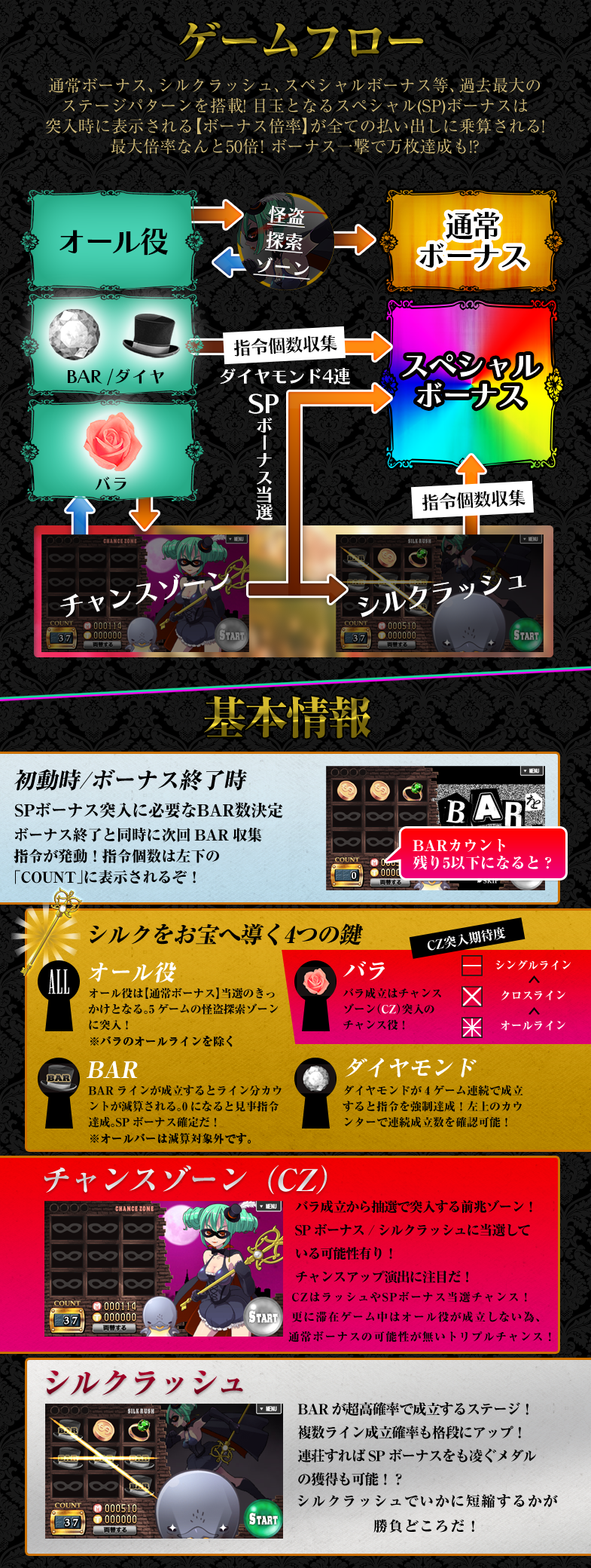 機種のスペックや、省電力モード等の性能を制限する機能がONの場合、リール停止や演出が正常に表示されない可能性がございます。