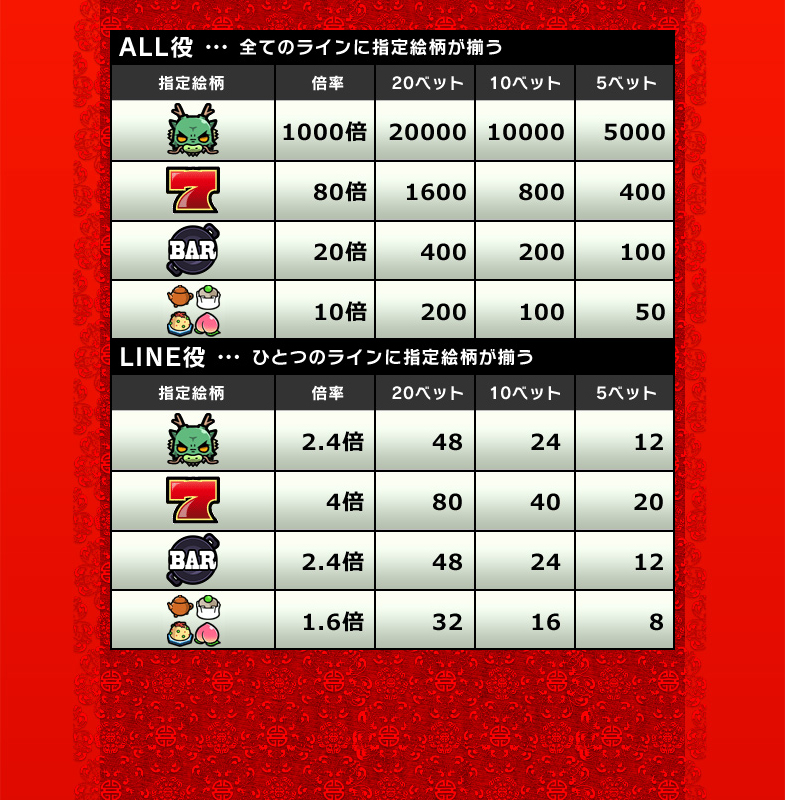 8ラインスロット「」はMAXベット専用機です(MAXベットはバトルエリアの場合5ポイントのみとなります。トレジャーエリアの場合は5枚/10枚/20枚の3種類の台からお選び頂けます)。