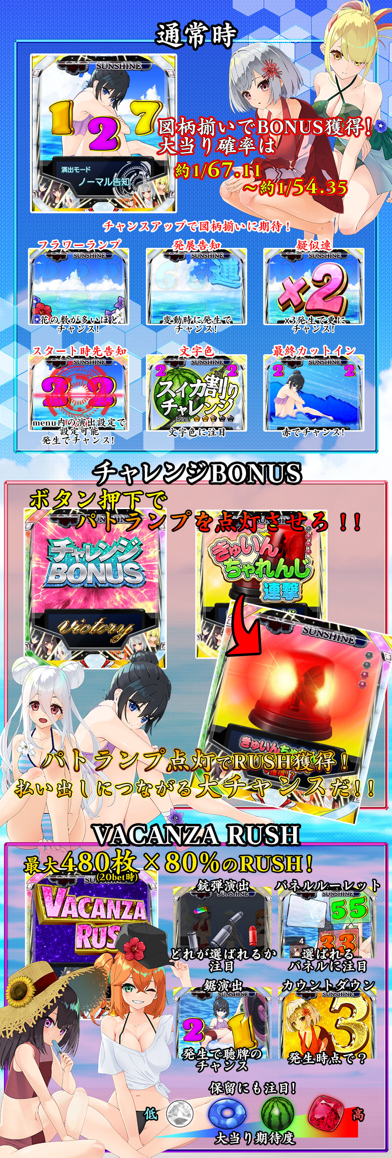 機種のスペックや、省電力モード等の性能を制限する機能がONの場合、リール停止や演出が正常に表示されない可能性がございます。