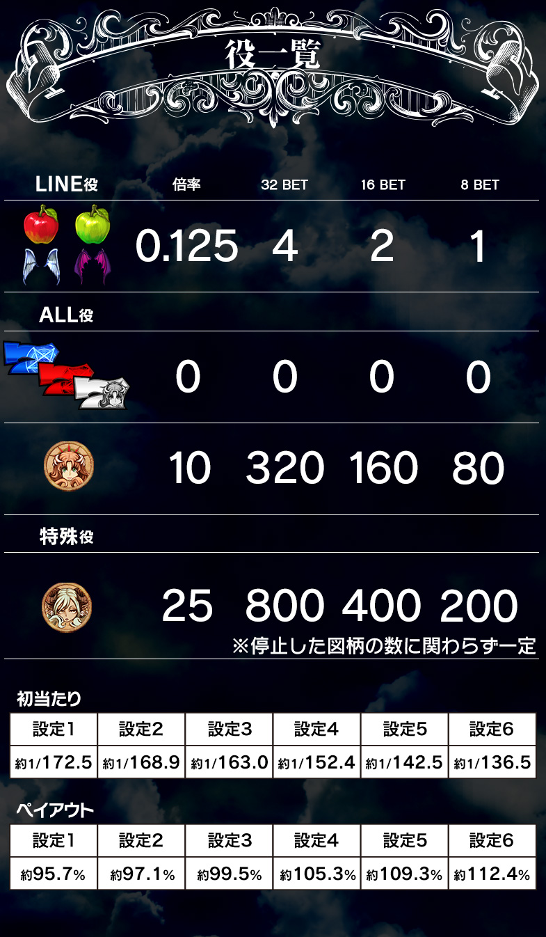 オール7などの役によりEXPが加算されます。 さらにバトルエリアでは毎ベット(Pt)分のEXPが加算されます。