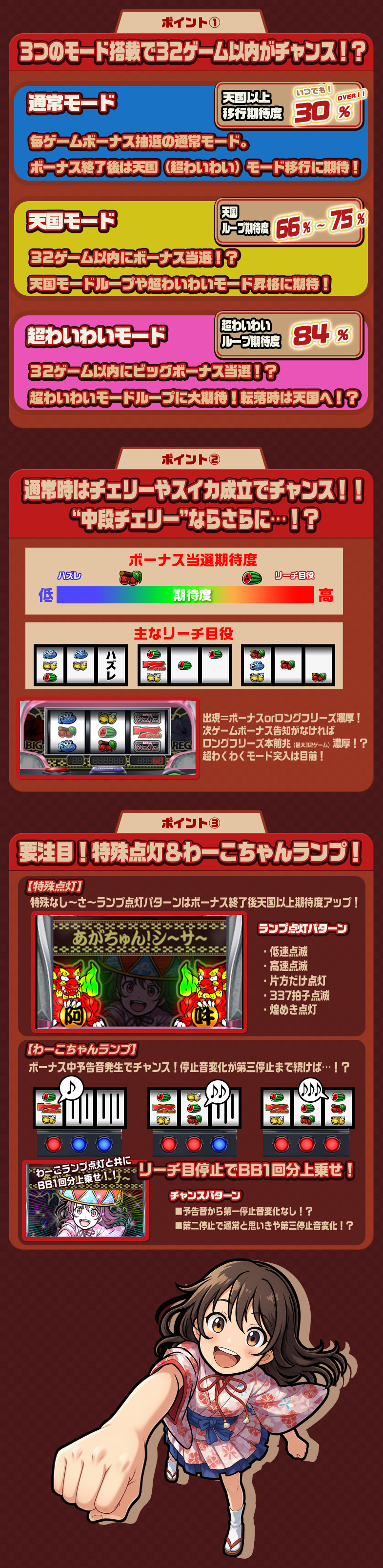 8ラインスロット「わいわい!あがちゅん!シ~サ~ 32Gver」はMAXベット専用機です(MAXベットはバトルエリアの場合5ポイントのみとなります。トレジャーエリアの場合は5枚/10枚/20枚の3種類の台からお選び頂けます)。