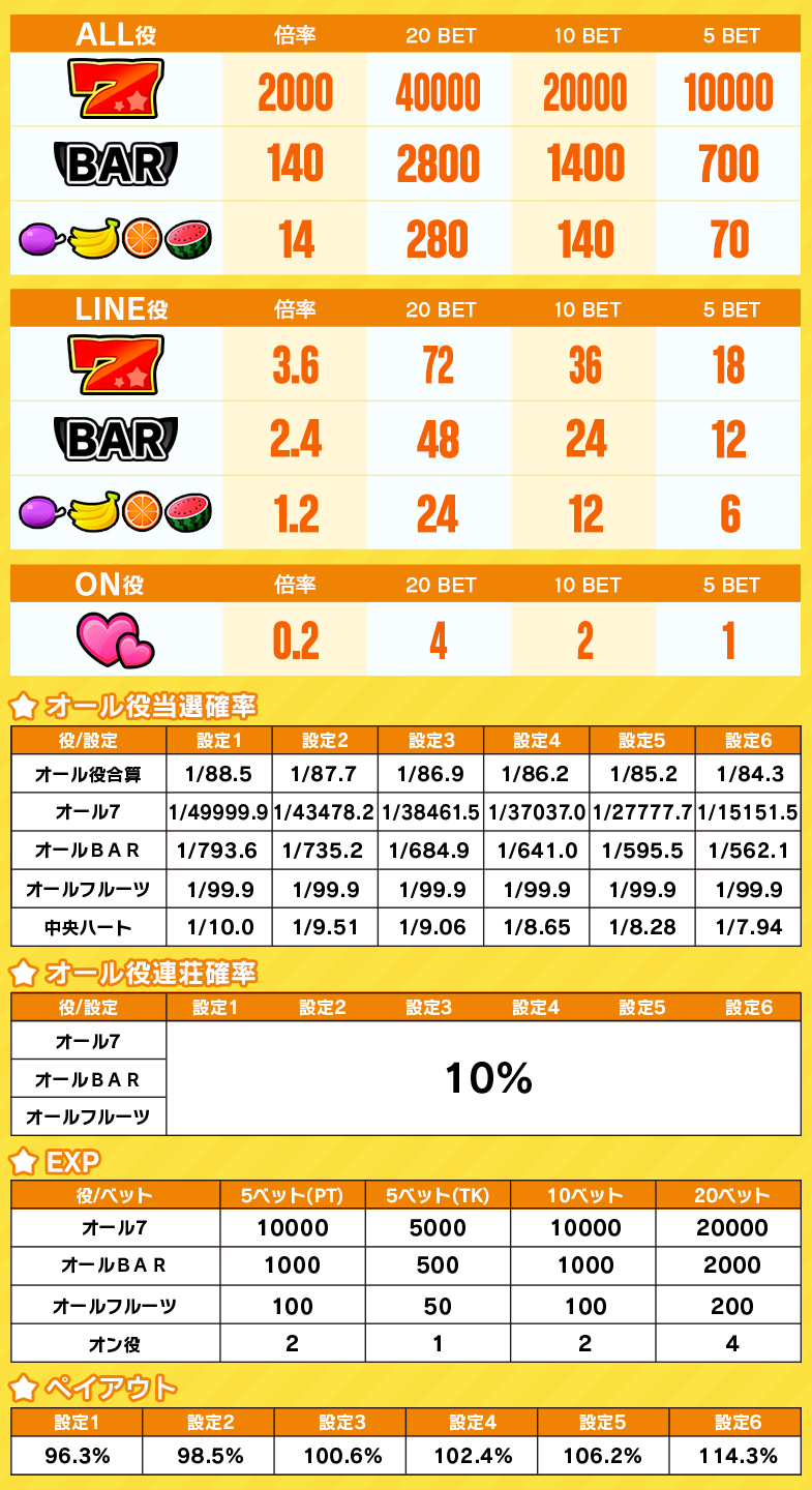 設定が高い程メダルを獲得する可能性が高くなります。詳細はスペック表にてご確認ください。