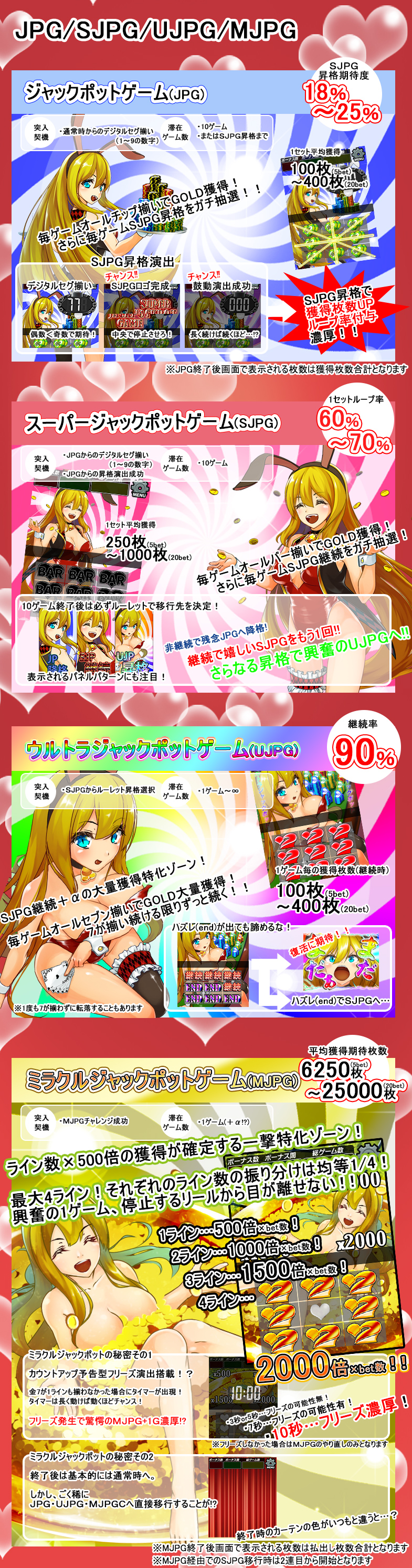 設定が高い程メダルを獲得する可能性が高くなります。詳細はスペック表にてご確認ください。