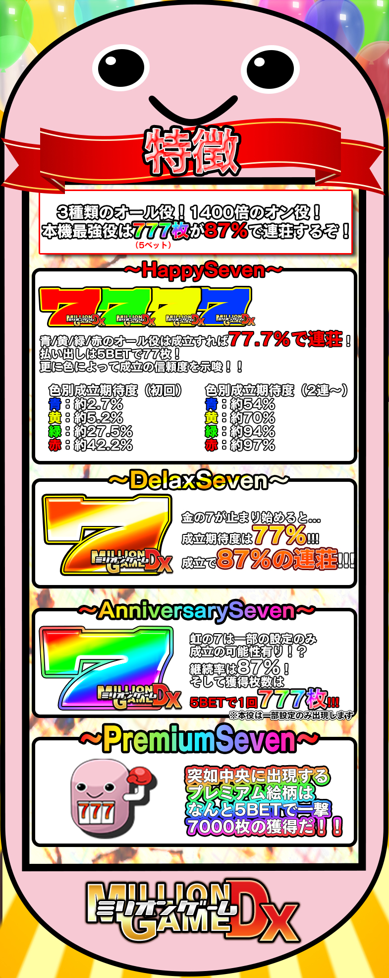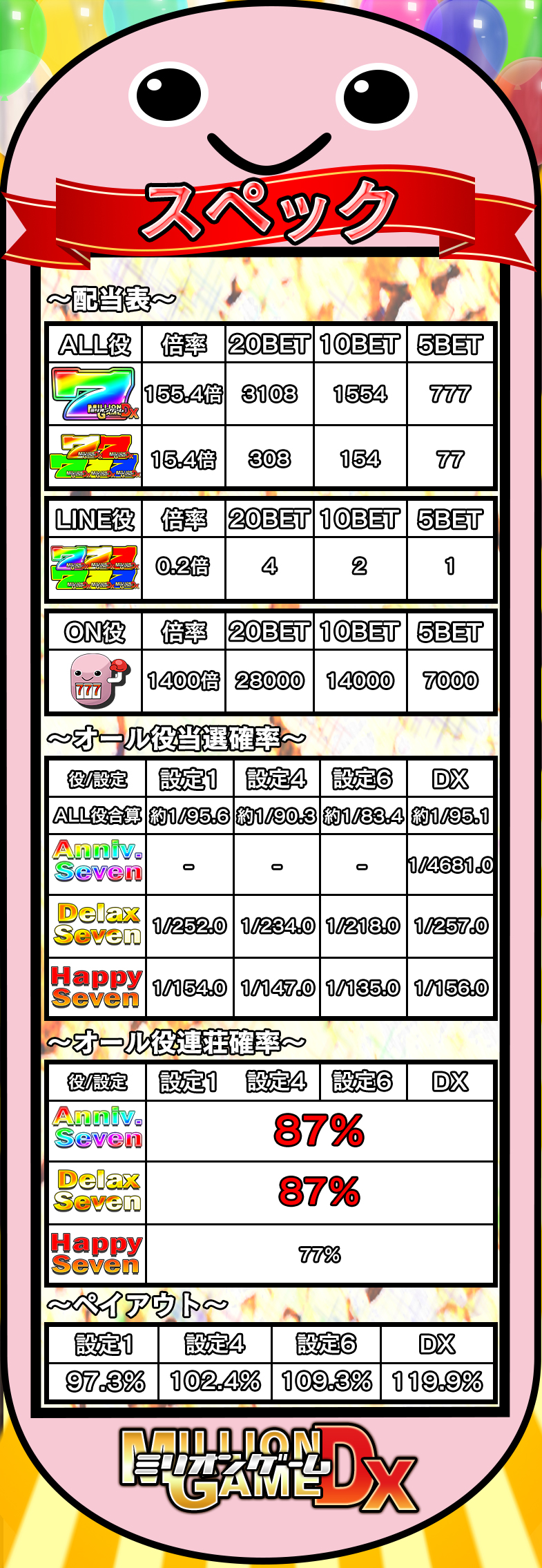 設定が高い程メダルを獲得する可能性が高くなります。詳細はスペック表にてご確認ください。