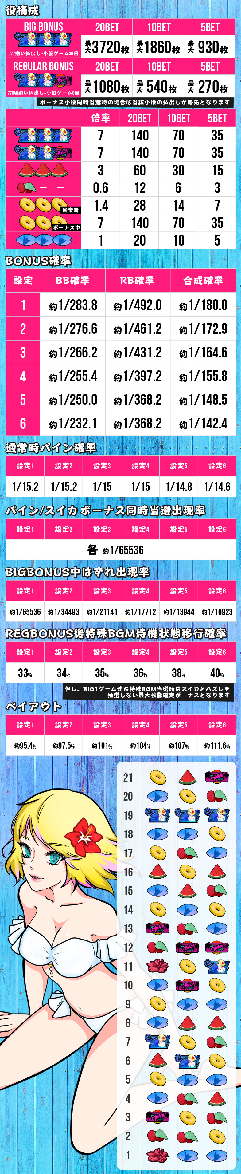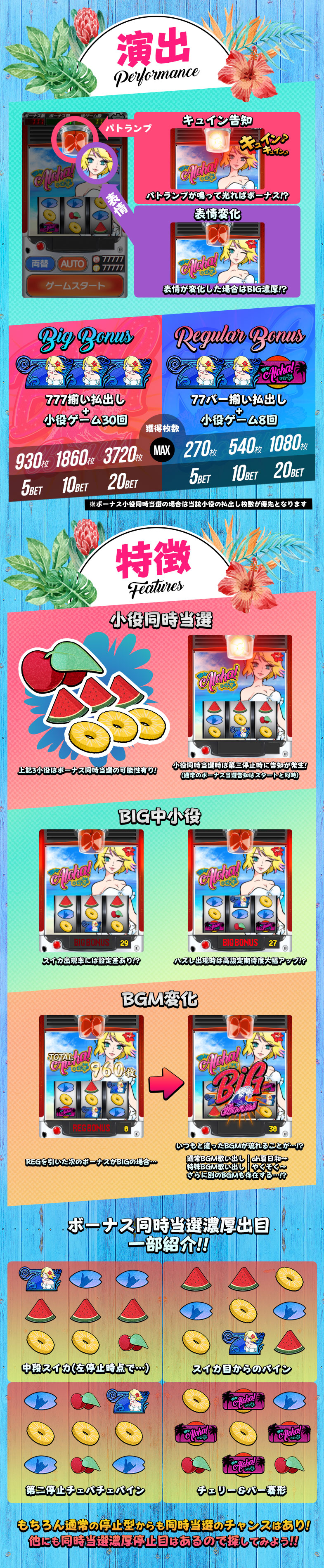 8ラインスロット「遊々アロハ!」はMAXベット専用機です(MAXベットはバトルエリアの場合5ポイントのみとなります。トレジャーエリアの場合は5枚/10枚/20枚の3種類の台からお選び頂けます)。