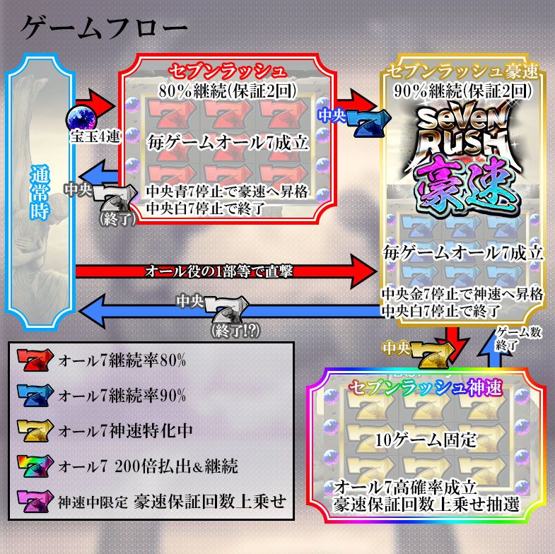 機種のスペックや、省電力モード等の性能を制限する機能がONの場合、リール停止や演出が正常に表示されない可能性がございます。